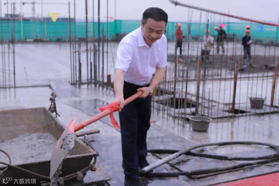 董事长亲自为大楼主体建筑浇筑了最后一注混凝土,现场礼炮鸣响,欢声如雷,齐放的礼炮声传递着大家喜悦而激动的心情。