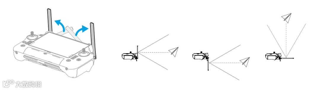 根据遥控器与飞行器的相对位置,调整遥控器外置天线指向并将天线平面对准飞行器方向,以便遥控器与飞行器的信号质量达到最佳状态。
