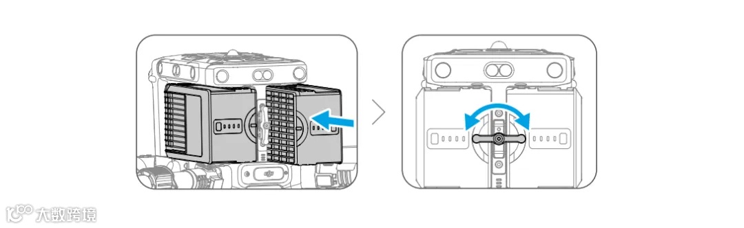 · 如需移除云台相机,请先按住飞行器的云台相机解锁按键,再旋转移除云台相机。