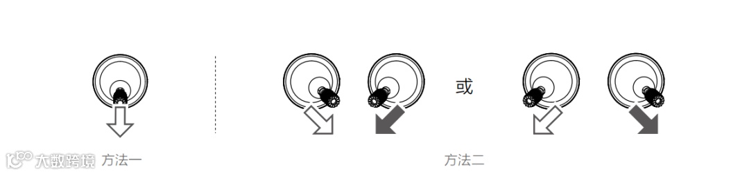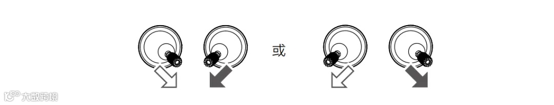 执行以下任一掰杆动作可启动电机。电机起转后,请马上松开摇杆。