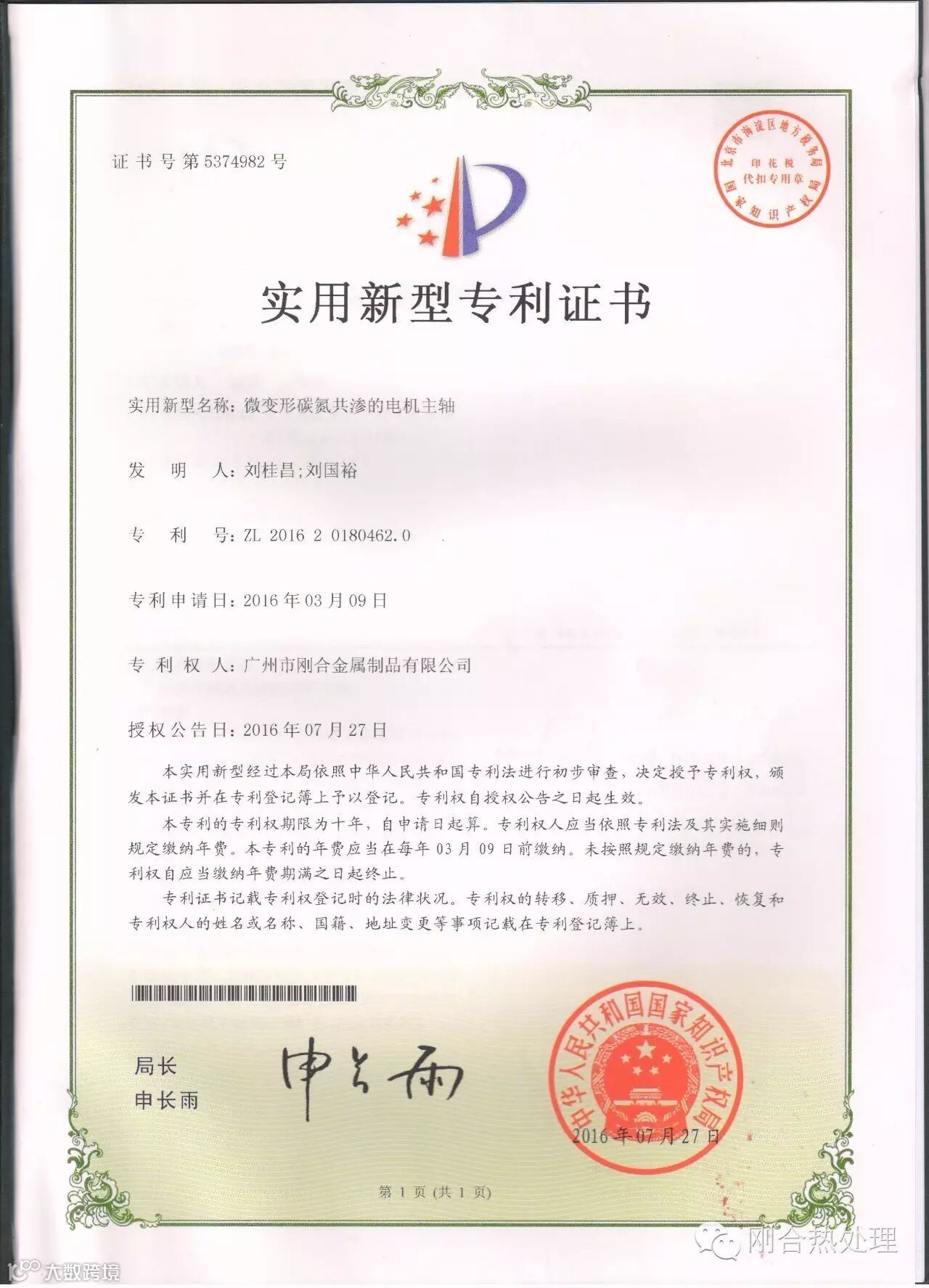 1、【实用新型专利名称】:微变形碳氮共渗的电机主轴