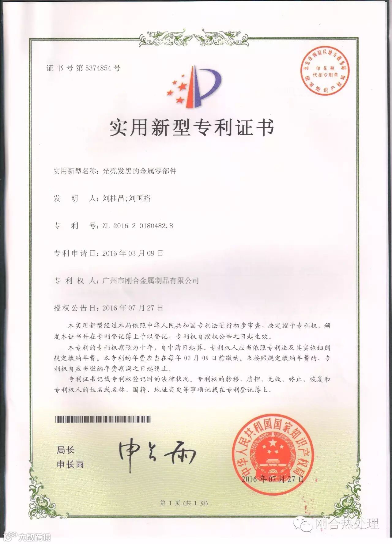 1、【实用新型专利名称】:光亮发黑的金属零部件