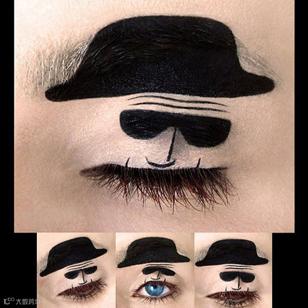 热门美剧《Breaking Bad》中的男主角老白也被演绎到了眼皮上,只用标志性的帽子和眼镜以及脑门的皱纹就概括出了他的形象,也足以可见该剧的受欢迎程度。