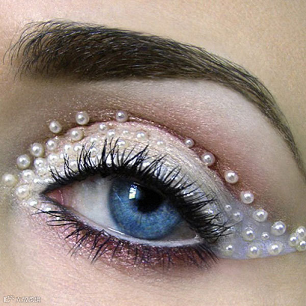与“黑天鹅”相对应的是以珍珠作为点缀的“天鹅湖”眼妆。