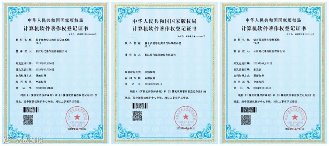 长江时代利用大数据、人工智能等技术手段,建立反诈技术系统,对可疑电话、短信、邮件等予以识别和拦截。目前,长江时代已产出《语音模拟欺诈检测系统V1.0》《基于深度学习的语音交互系统》《基于多模态的实名自动审核系统》3项与反诈技术应用的相关软件著作权,为通信行业的反诈工作提供了长江时代的解决与应用方案。