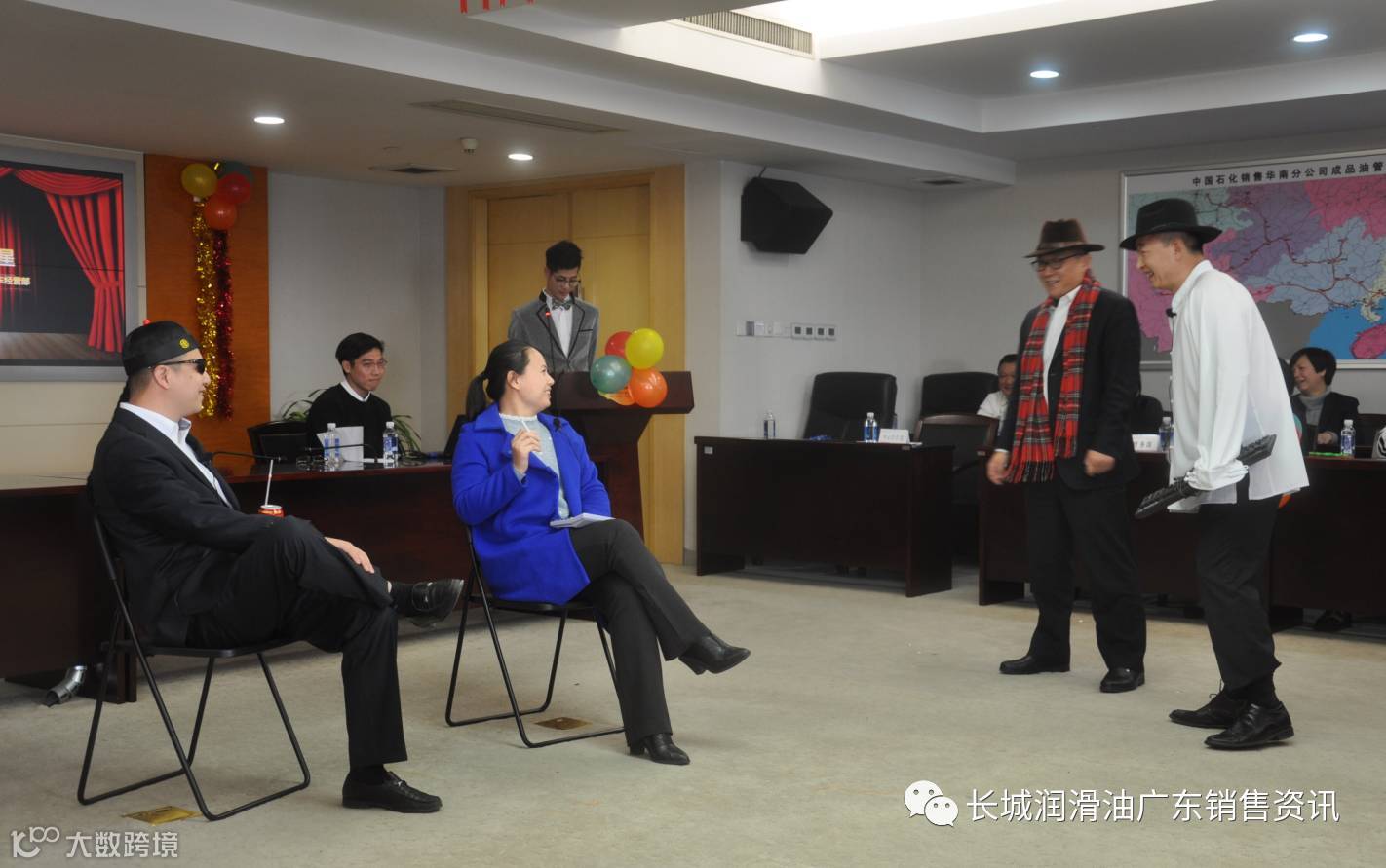 当天下午举行了分公司年会,分公司13部门(经营部)按抽签方式选定节目,有舞蹈、诗歌朗诵、经典电影片段模仿等,节目类型丰富多彩,员工演出创意十足,现场气氛热烈、欢声雷动。