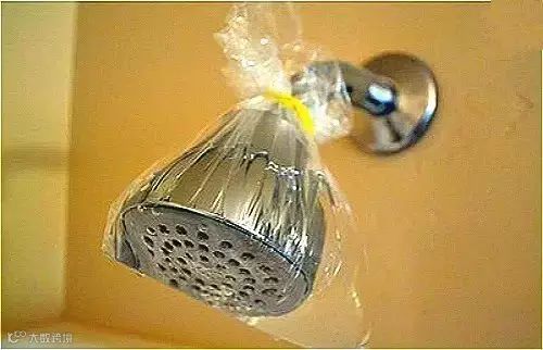怎么清洗沐浴喷头?拿一个塑料袋,倒入白醋,包裹住淋浴头并用橡皮筋固定,浸泡1小时后用干毛巾擦干,完美解决。