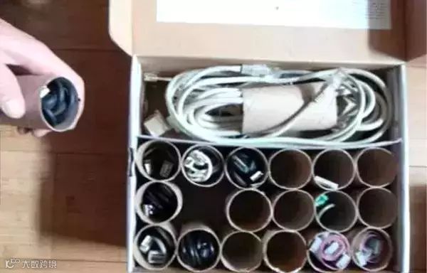 用卫生纸芯不要扔,放各种连接线、数据线再合适不过了!强迫症们快来感受一下那种严丝合缝、整洁划一的快感~