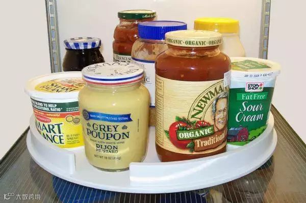 冰箱里放一个转盘。可以像微波炉的一样,转动自如,方便拿东西。