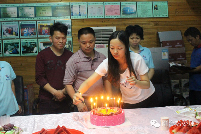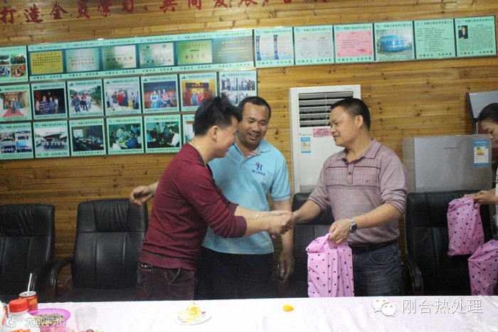 2015年4月15日晚8时,刚合热处理会议厅热闹非凡,乐意融融,公司4月份“员工生日晚会”在此欢快举行。来自公司4月份生日的员工、领导欢聚一堂,共庆生日。公司“员工生日晚会”活动的举办,突显以人为本的精神,能够更好地建立员工互相了解、互相沟通和互相学习的平台。其最大意义在于让大家体会到公司一直倡导的企业文化精神,让员工们在公司工作也能感受到家一般的温暖,让“刚合是我家”深入每一位基层员工的心里,让“员工是家人”深入每一位管理人员的心中。