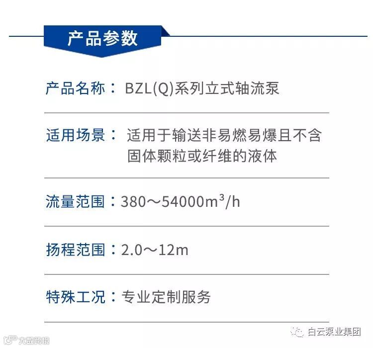 BZL(Q)系列立式轴流泵是根据市场需求,吸取了国内外同类产品的先进技术,消化吸收优化研制的新型轴流泵。