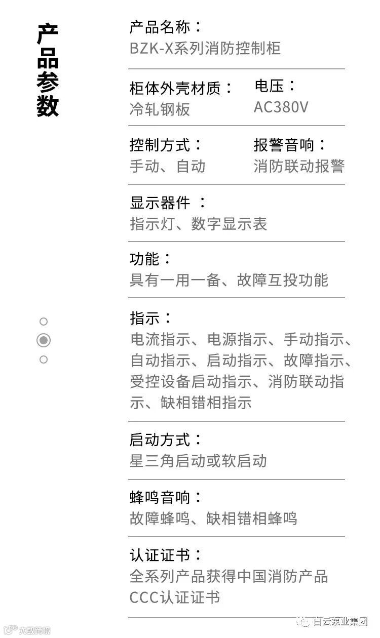 BZK-X系列消防控制柜是本公司按照GB16806-2006《消防联动控制系统》的要求,采用高质量、高性能的电器元件、先进的生产工艺生产的一种控制柜,具有CCCF证书。