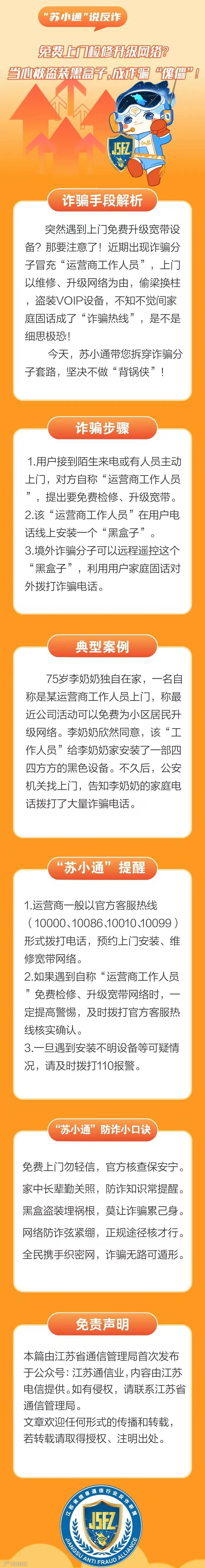 “苏小通”说反诈 | 免费上门检修升级网络?当心被盗装黑盒子,成诈骗“傀儡”!