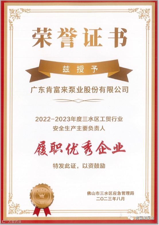 8月8日,三水区应急管理局组织召开工贸行业企业安全生产主要负责人履职工作会议,肯富来被授予“安全生产主要负责人履职优秀企业”。