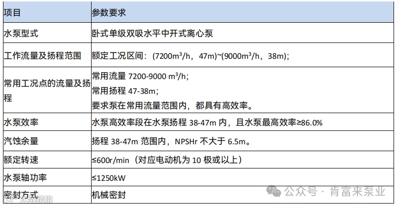 本项目中,要求泵的技术参数不低于下表中的要求: