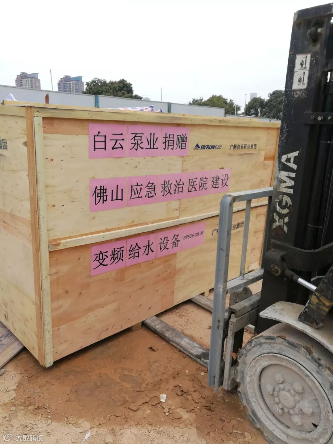 2月9日上午,白云泵业捐赠的变频给水设备顺利运抵