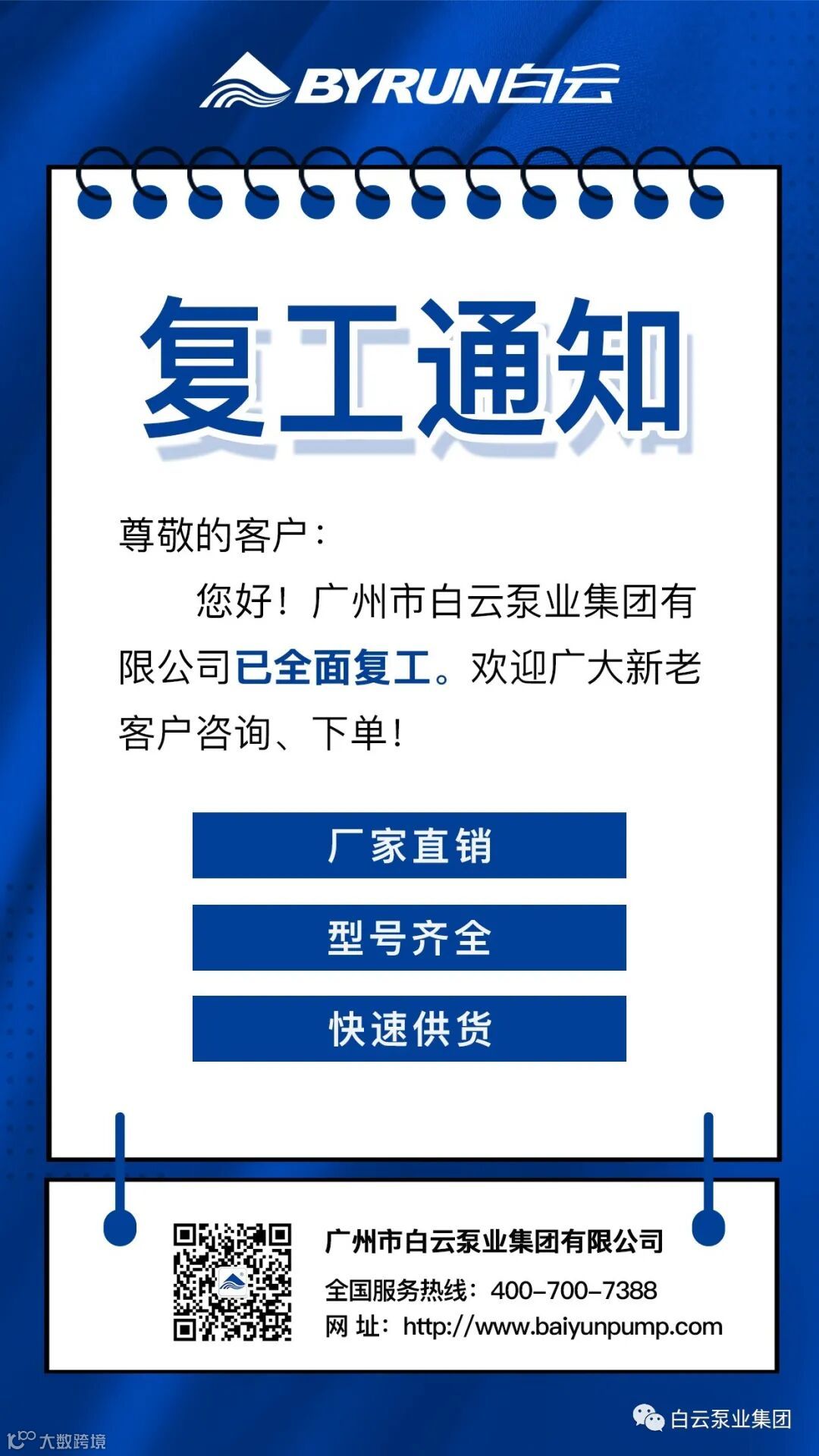 广州市白云泵业集团有限公司是集研发、制造、销售安装、服务各类泵、给水设备、水处理设备、智能控制设备等系列产品为一体的大型高新技术产业集团;
