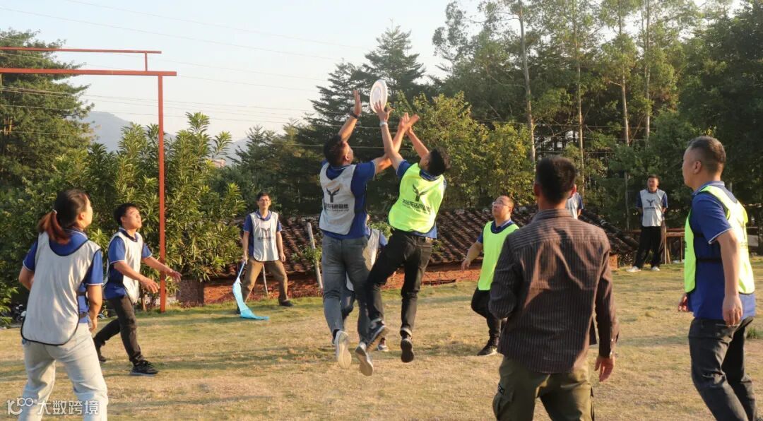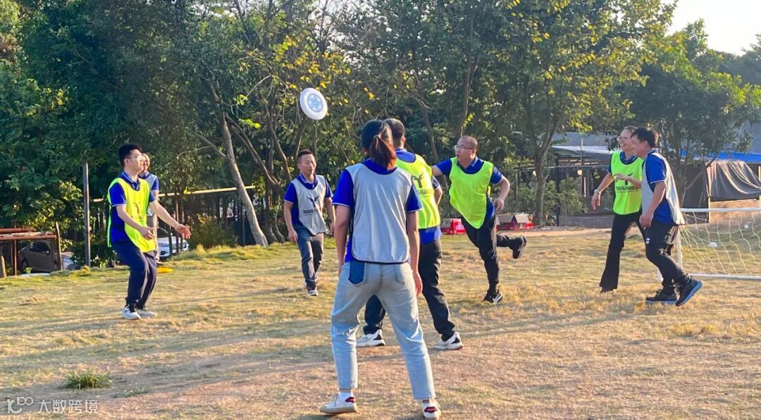 一切的练习都是为了最终的胜利,拓展活动的最后是飞盘躲避赛项目,现场气氛迅速升温。全员共分为四支队伍,两两对抗。大家身穿不同颜色的服装,在草地上奔跑、传盘、接盘、飞扑拦截,通力协作,巧妙配合,用一次次瞄准精确的掷出,一次次奋力跃起的拦截,一次次判断精准的接盘,制造了一个又一个激动人心的得分瞬间,成为运动场上一道靓丽的风景线。