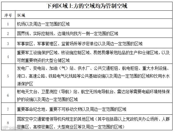 适飞空域:管制空域范围以外的空域是微、轻、小型无人机的适飞空域(简