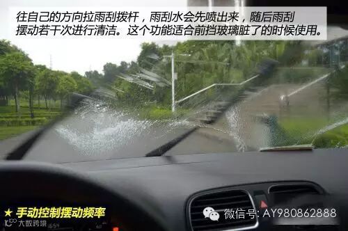 还有一点需要注意,那就是不要让雨刷干刷玻璃(即在玻璃干燥的时候让雨刷摆动)——假如雨刷胶条老化变硬,或者挡风玻璃上附着不少泥沙异物,雨刷很容易将玻璃刮花,造成不可修复的损伤。