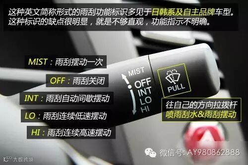 ● 雨刷拨杆上的标识是什么意思?