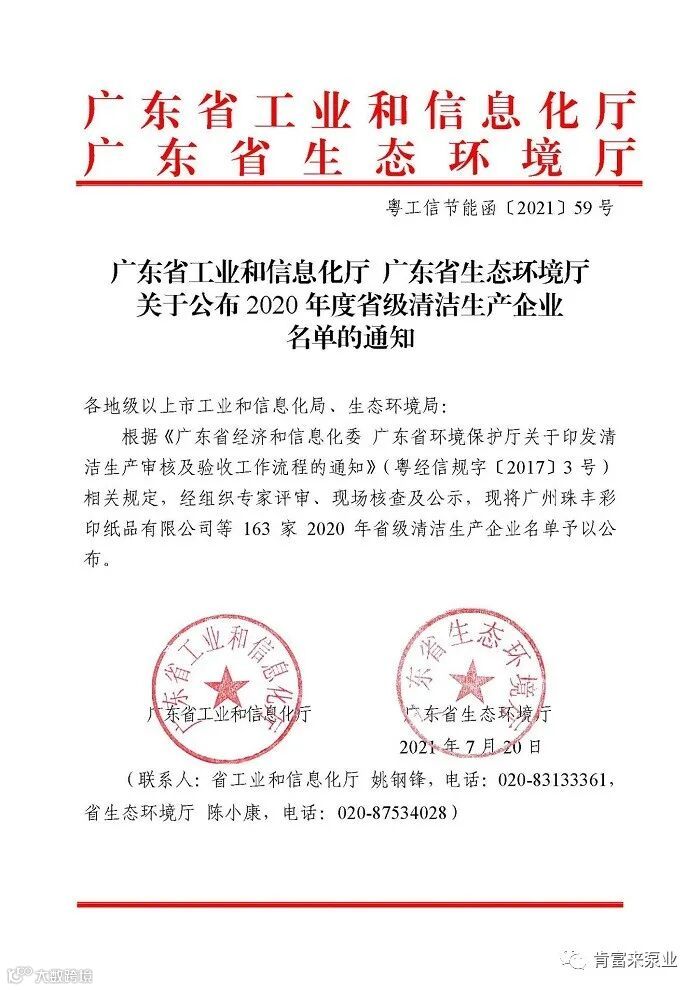 近日,广东省工业和信息化厅、广东省生态环境厅下发的《关于公布2020 年度省级清洁生产企业名单的通知》,公布了2020年省级清洁生产企业名单,全省163家企业通过省级审核,肯富来位列其中,首次通过省级清洁生产审核。