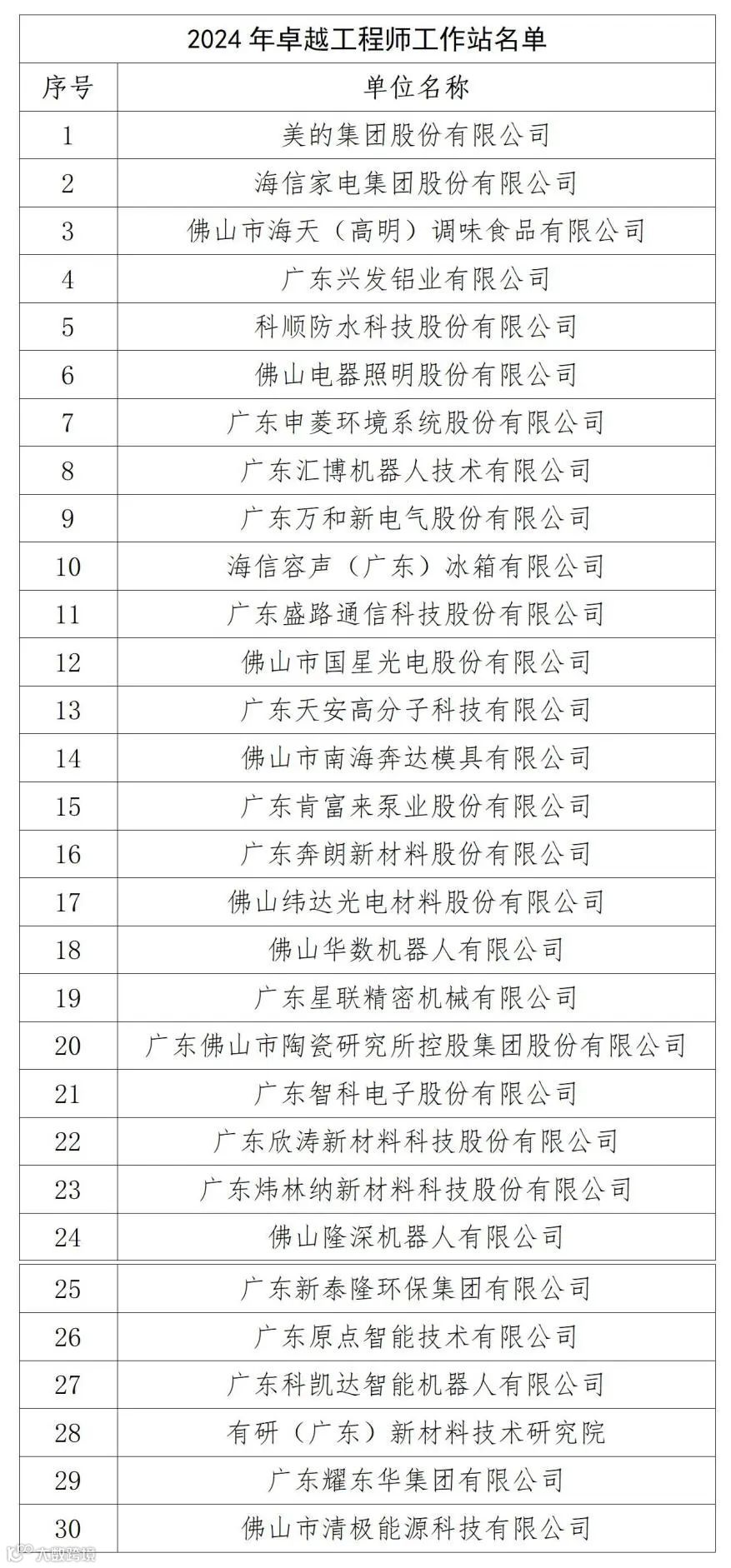 经企业申请、材料初审、专家审核,共30家企业通过遴选,其中包括肯富来泵业,被授予国家卓越工程师创新研究院“卓越工程师工作站”牌匾,企业可通过佛山国创院与境内外高水平大学开展硕博士联合培养和高水平协同创新,具体名单如下: