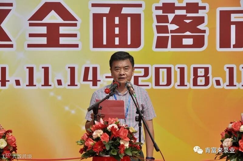 “今天,我们在这里举行庆典活动,一方面是庆祝肯富来创业64周年,从今百尺竿头,更进一步;一方面是正式宣告肯富来白坭厂区全面落成运营,标志着肯富来从今开始在白坭镇生根发芽,开花结果,茁壮成长。未来,我们将继续弘扬‘务实、专注、包容、创新’的企业精神,齐心协力、同舟共济,在新的起点,开创新的征程,创造新的辉煌,早日实现公司上市,致力将公司打造成为世界知名制泵企业,打造百年老店,为肯富来、为三水区白坭镇经济发展做出应有的贡献。我们坚信,在区、镇领导和相关部门大力支持下,在全体肯富来人共同努力下,我们的目标一定能够实现!”陈州国董事长的致辞,赢得了大家热烈的掌声。