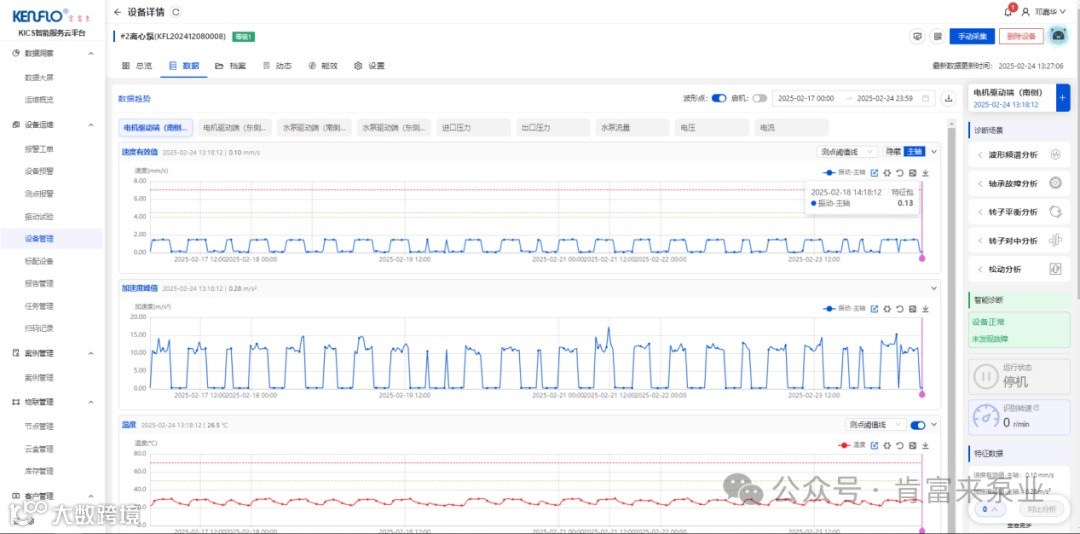 为响应客户对泵运行状态监测及对泵预测性维护的需求。近日,肯富来泵业联合清华大学及湃方科技,共同研发了一款针对泵机设备的全生命周期设备智能物联管理系统——肯富来KICS智能云服务平台。