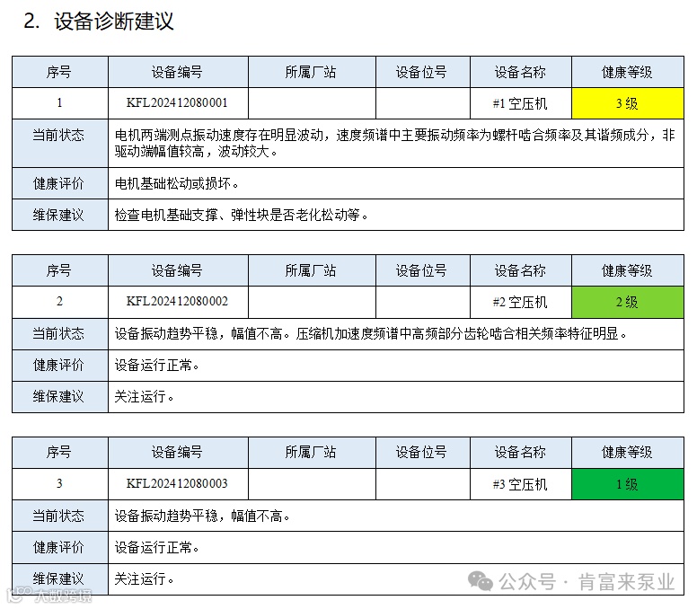 经过肯富来在多处试验基地,分别对离心水泵、真空泵及螺杆空压机进行了健康状态监测及能效监测。现对外发布。