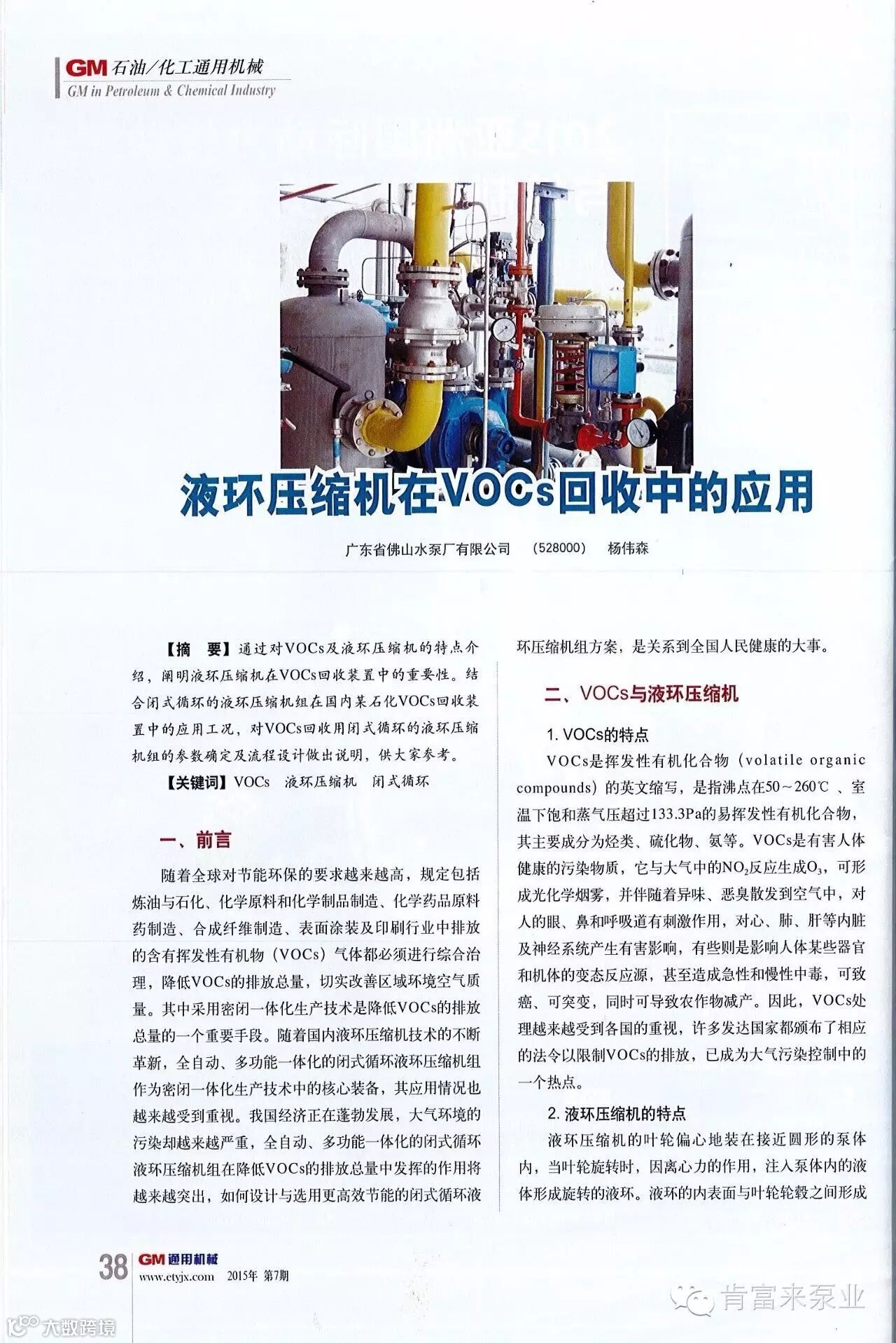 导读:液环压缩机在VOCs回收中的应用