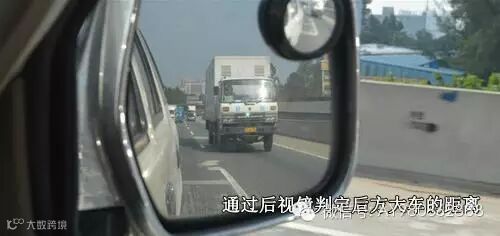 8、超车完成后,不要马上回到行车道,在超车道行驶一段后再回去,如何判断?通过右后视镜看到大车的前脸即可!