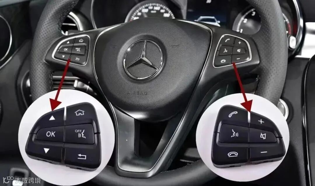 奔驰C级车方向盘按键主要分为左右两部分。一边各6个键组成,主要作用为控制显示屏切换、语音控制功能、蓝牙电话等基础功能,位于方向盘两侧方便操作,提高使用行驶过程中的安全性,按键损坏的跟换至关重要。