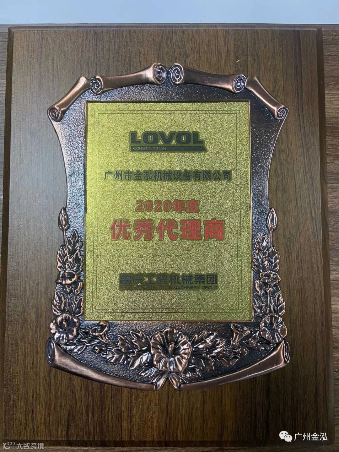 喜讯,广州市金泓机械设备有限公司荣获由雷沃工程机械集团颁发的“优秀代理商”称号。
