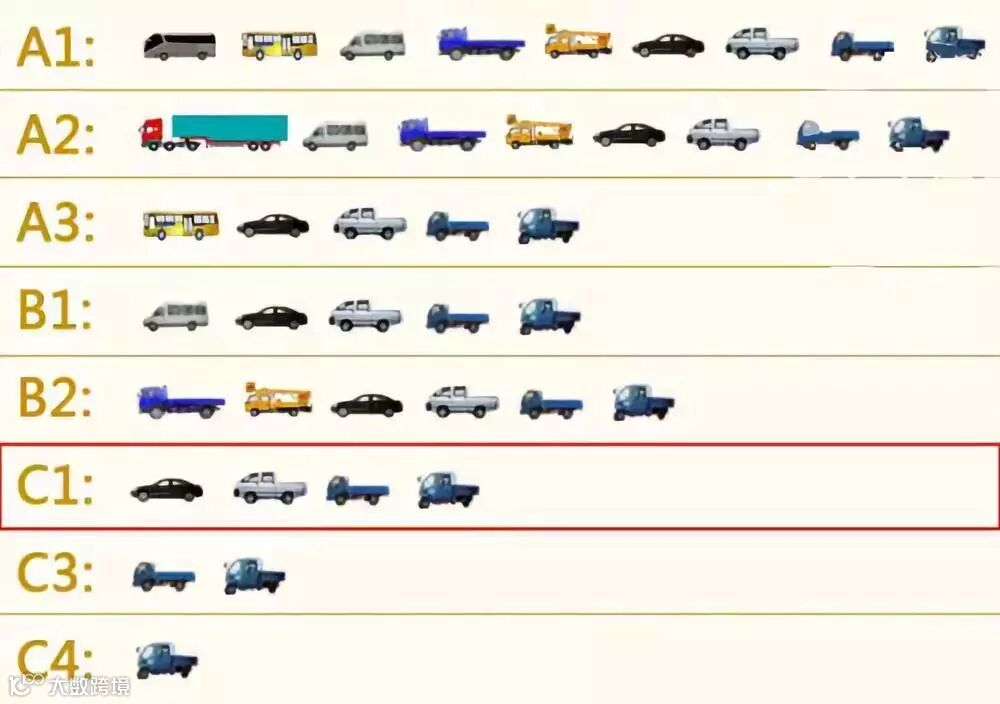 除了上述车型,C1驾驶证还可以驾驶C2、C3、C4的准驾车型。