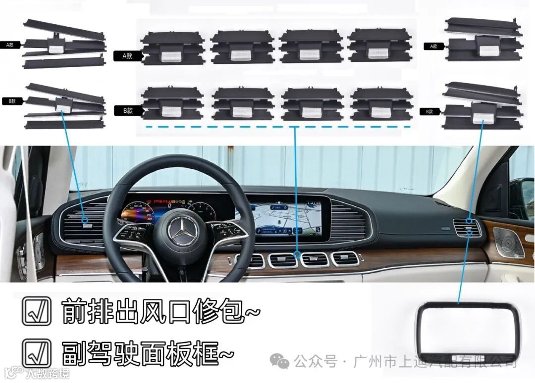 W167主/副驾驶风口修包 W167中/后风口修包 W167副驾驶/后风口面板框 |