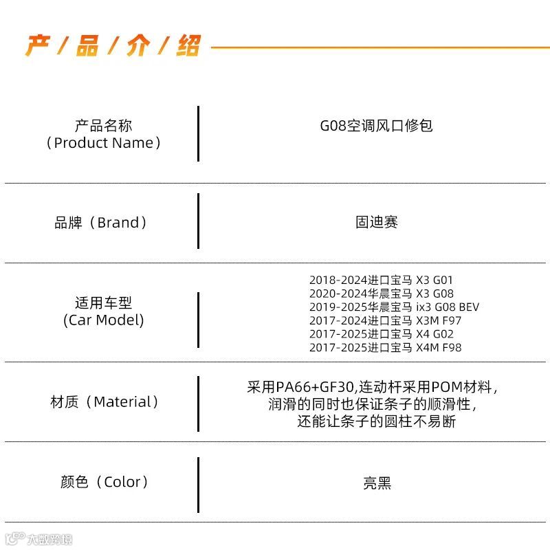 专门针对宝马新款X3 G08车型设计,只需更换损坏的部件,就能轻松修复出风口,让它恢复如初。相比更换总成,修包的价格简直太亲民了,能为你节省大量的维修成本。