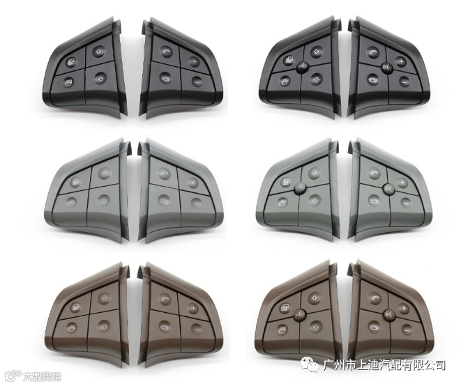 按键底座的颜色与按键是相对应的,也是包含了三种颜色,我们的底座与按键是分开的,顾客可以选择单独购买也可选择组合购买。看完了底座接下来我们看看高配的方向盘按键吧。