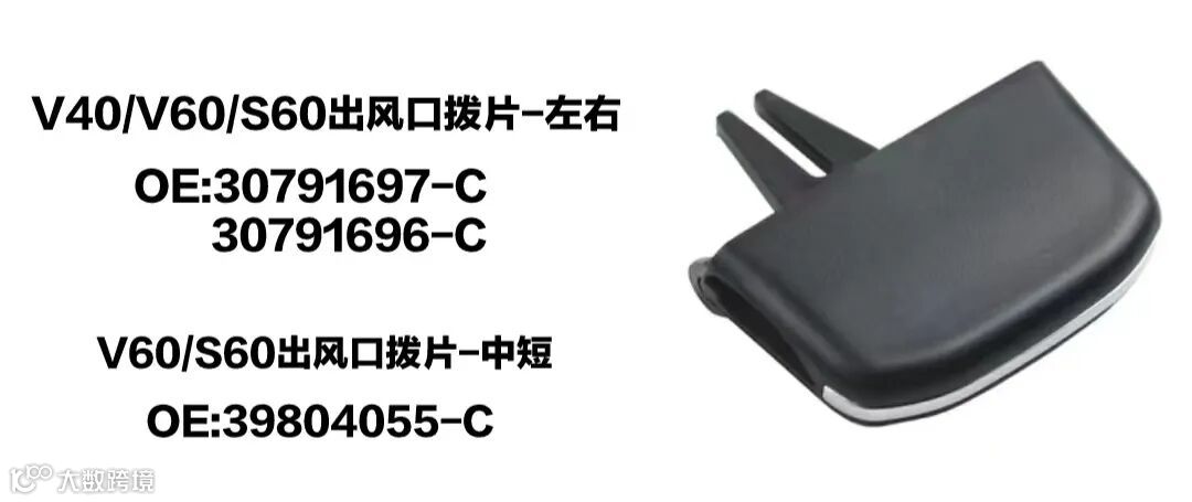 V40使用两种拨片,左右两个与S60左右/中短相同,中间风口两个拨片为一款拨片