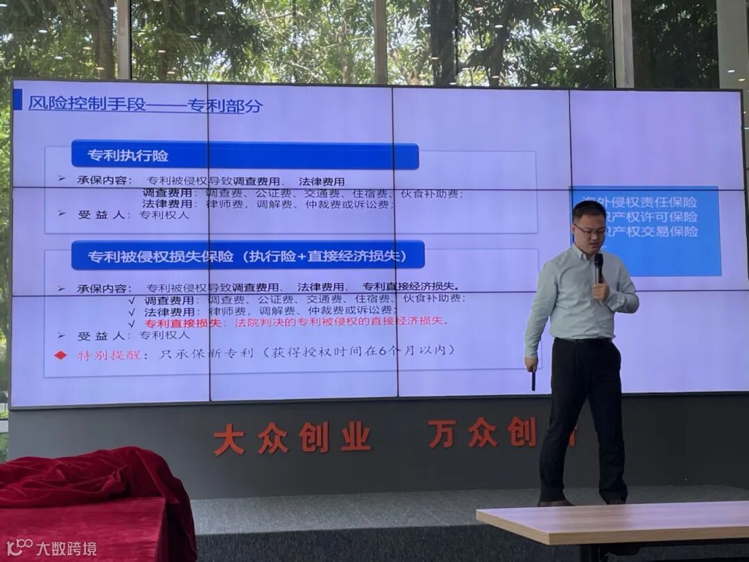 郎总主要针对知识产权风险管理、风险控制手段、保险保障体系、相关保险产品介绍及案例分享。