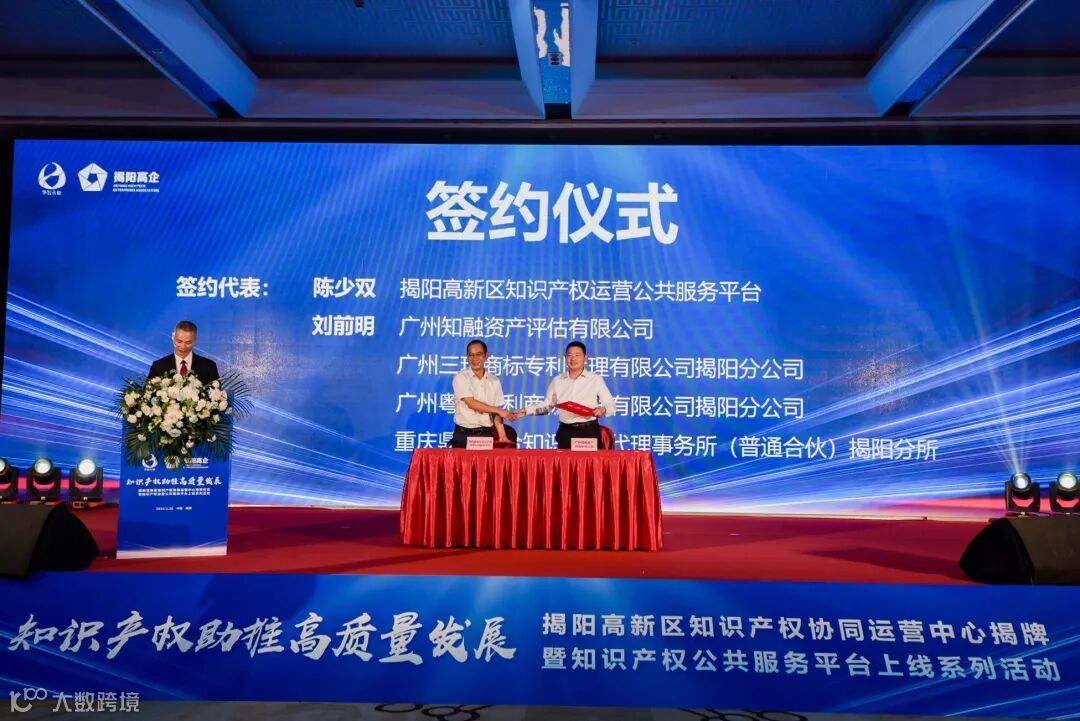 2022年4月26日,由揭阳市市场监督管理局(知识产权局)、揭阳高新技术产业开发区管理委员会主办,揭阳市高新技术企业协会、国家知识产权运营公共服务平台承办,广州知融资产评估有限公司、八戒科技服务有限公司协办的“揭阳高新区知识产权协同运营中心揭牌仪式暨知识产权运营公共服务平台上线系列活动”圆满成功。