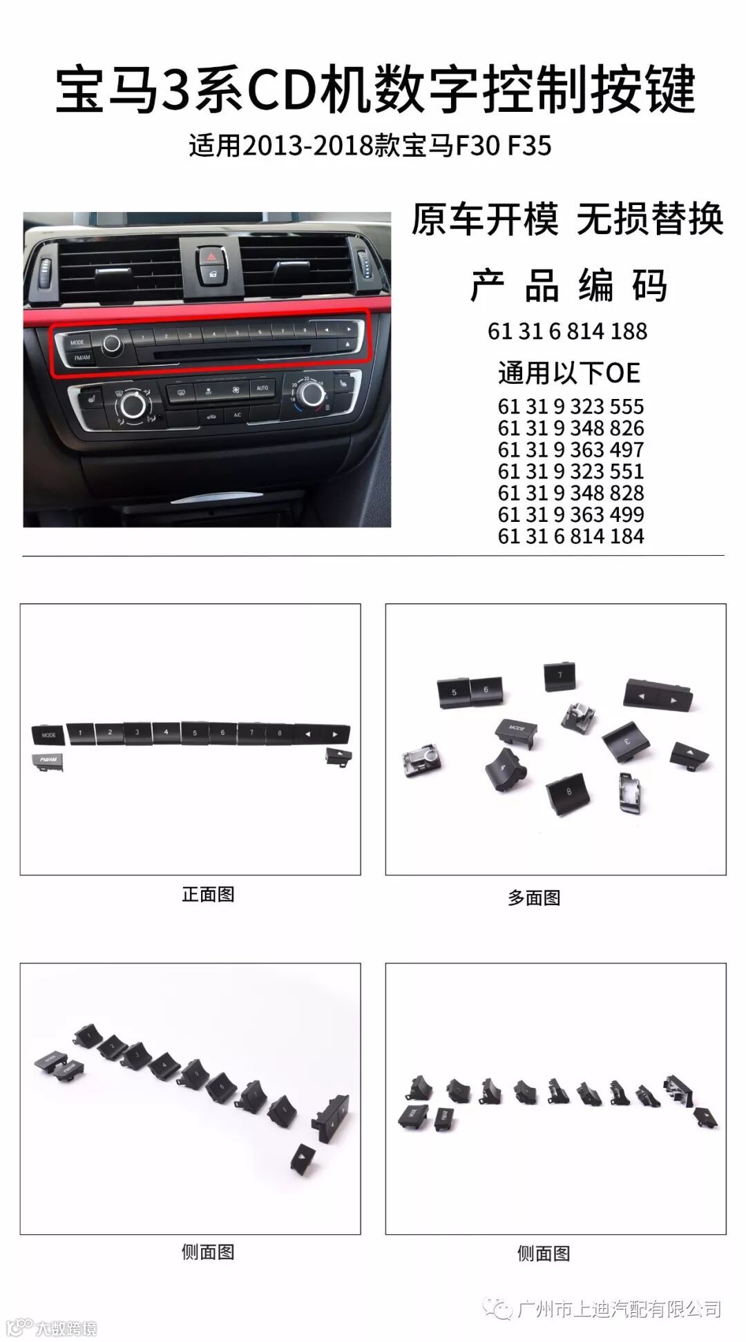 广州市上迪汽配有限公司宝马3系 CD机数字控制按键,适用2013-2018年 F30 F31 F34 F35 通用于F20 F21 F23 F36 F80 F82 F83 F87,升级版耐磨防刮,不易掉漆。