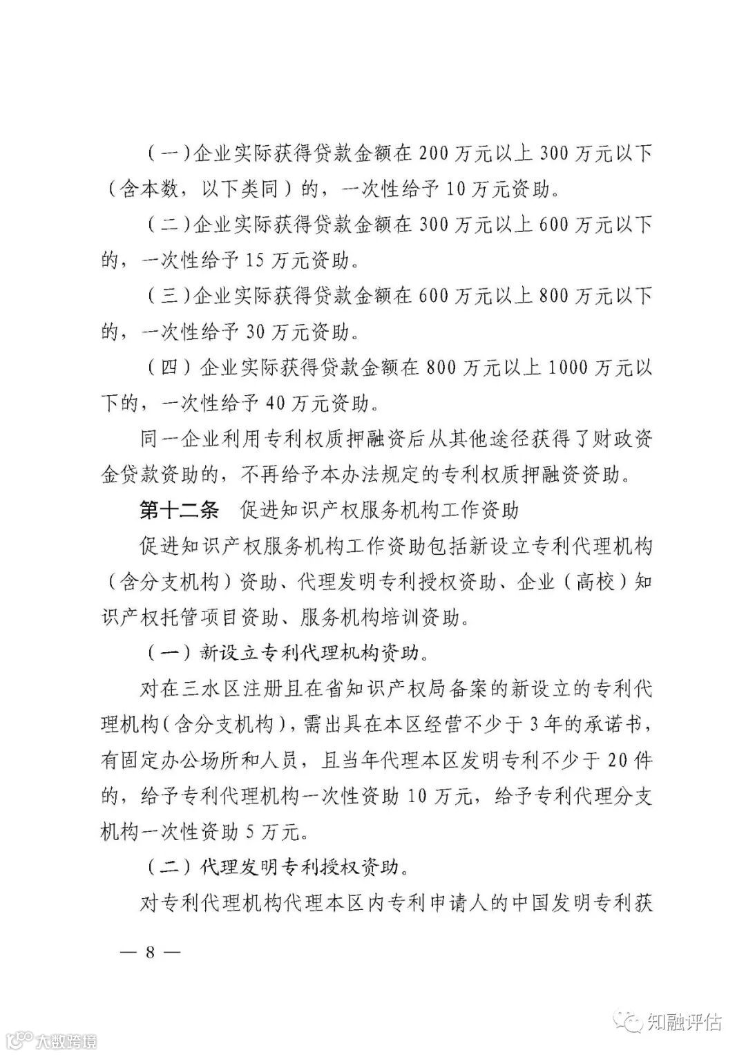 (三)企业实际获得贷款金额在 600 万元以上 800 万元以下的,一次性给予 30 万元资助。