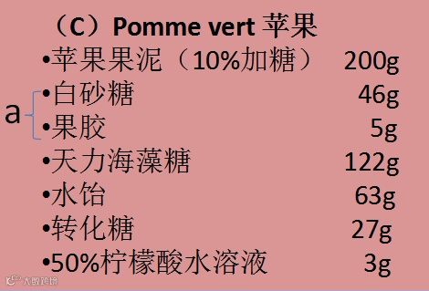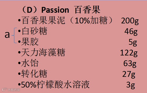 1.将果泥加热到40~50℃左右,拌入预先混好的材料(a)。