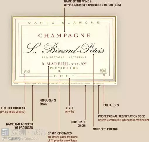 那香槟和气泡酒有何区别?区别就在于原产地保护了。只有像这样在瓶子上标明产自法国香槟区的气泡酒,才有资格当得起香槟的称号。