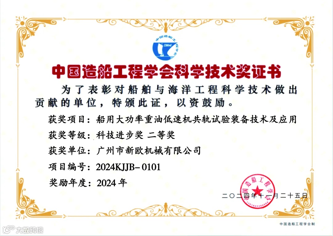 在介绍广州市新欧机械有限公司2024年连续荣获中国机械工业科学技术二等奖和中国造船工程学会科技二等奖等两个国家级技术大奖时,心中一种自豪感油然而生,企业虽小,也可成大事,在细分技术领域建立自己的行业影响力和竞争优势。
