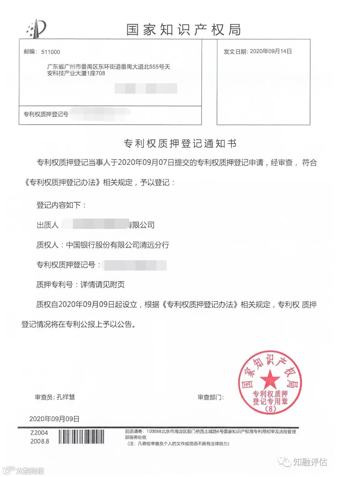 今日,知融评估公司又完成一笔金额较大的专利质押融资。清远市xxx有限公司自有的发明专利经过知融评估公司评估,评估值为3048万元。同时,知融评估公司免费协助企业办理专利质押登记。最后,清远市xxx有限公司成功获得中国银行清远分行的2500万元的知识产权质押融资信贷支持。