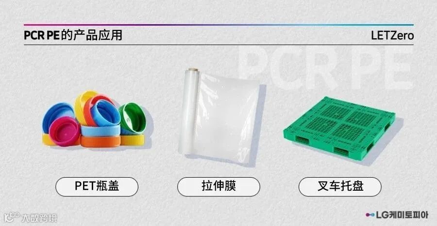 LG化学PCR PE按产品类别不同,再生料含量分为50%~80%不等,PCR PE与原生料保持同等的品质和物性,可适用于现有PE应用的所有产品群。目前,PCR PE主要应用于软包装材料、保鲜膜、吹塑容器等,也可用于工业托盘和运输箱、塑料瓶盖、管道、防护膜等。