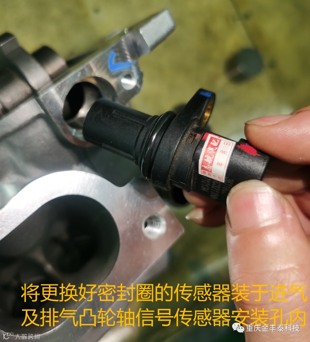 ③:将更换好密封圈的凸轮轴信号传感器安装于进气及排气凸轮轴信号传感器安装孔内