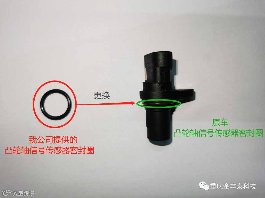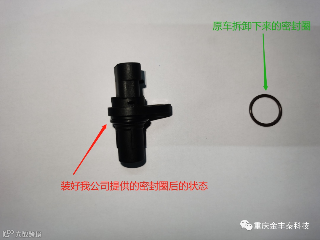 ①:将原车凸轮轴信号传感器密封圈取下,更换上我公司提供的凸轮轴信号传感器密封圈